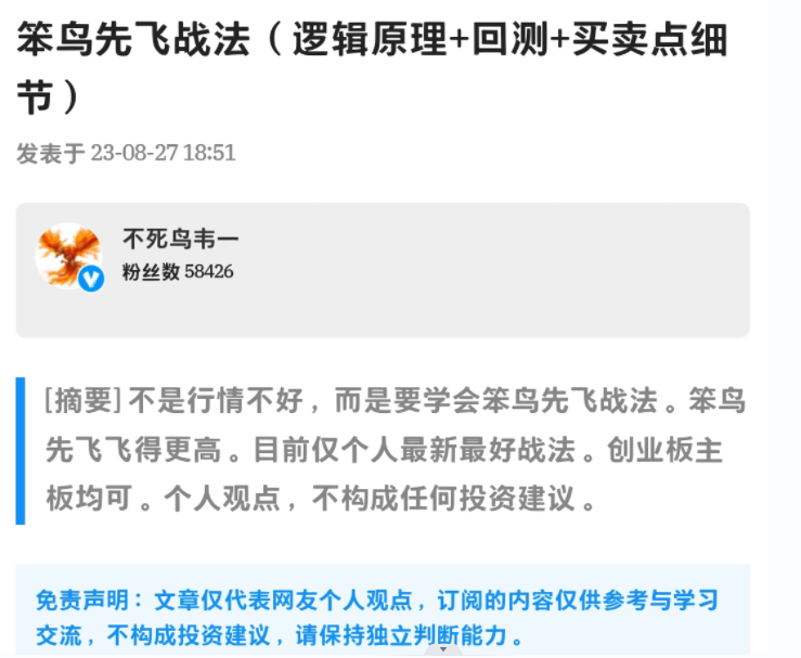 不死鸟韦一.笨鸟先飞战法(逻辑原理+回测+买卖点细 节)