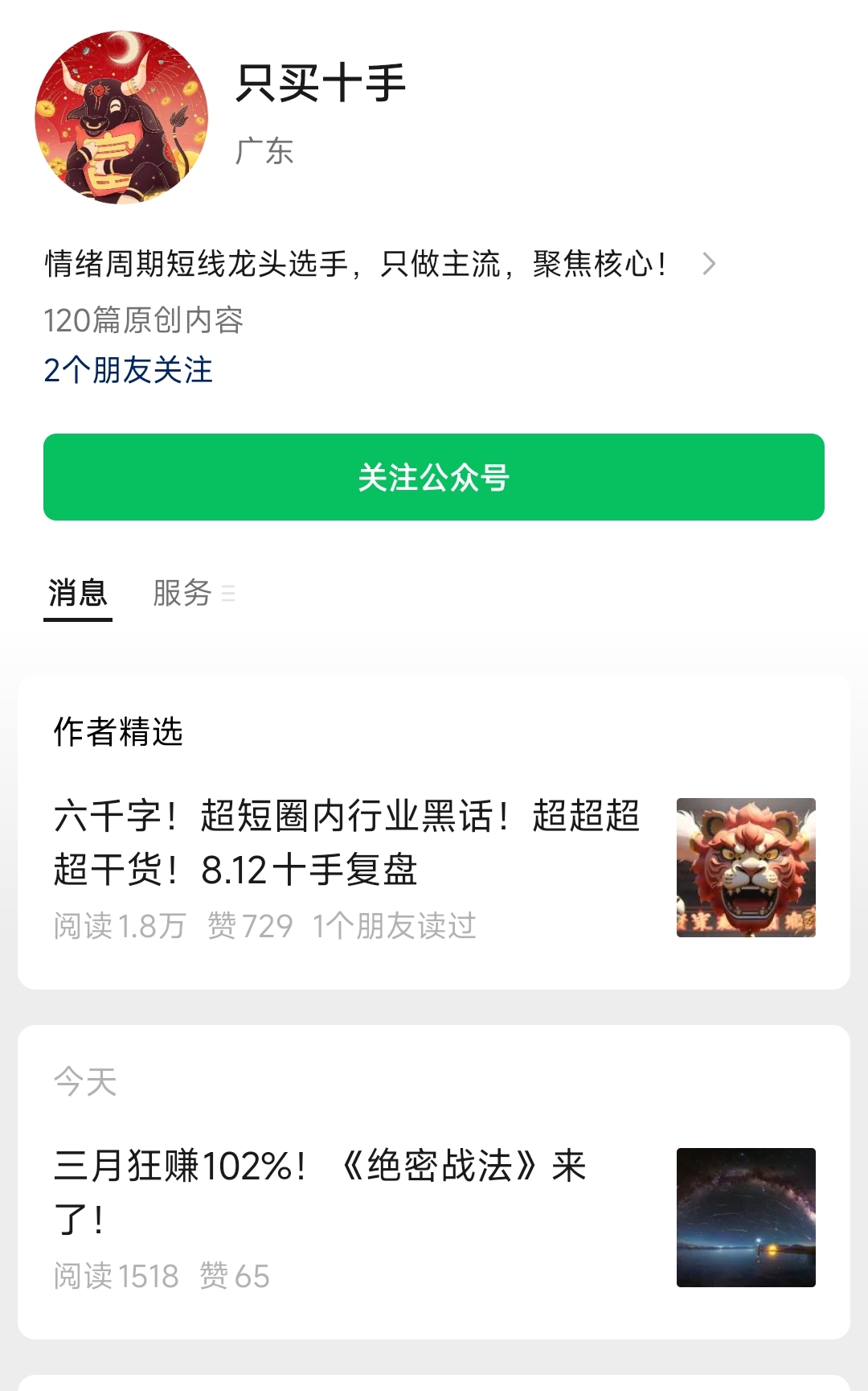 只买十手 只做二波龙头,P中分享买卖策略,盘后交流投Z观点。