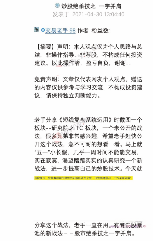 【交易老手98】炒股绝杀技之一字并肩战法 PDF文档