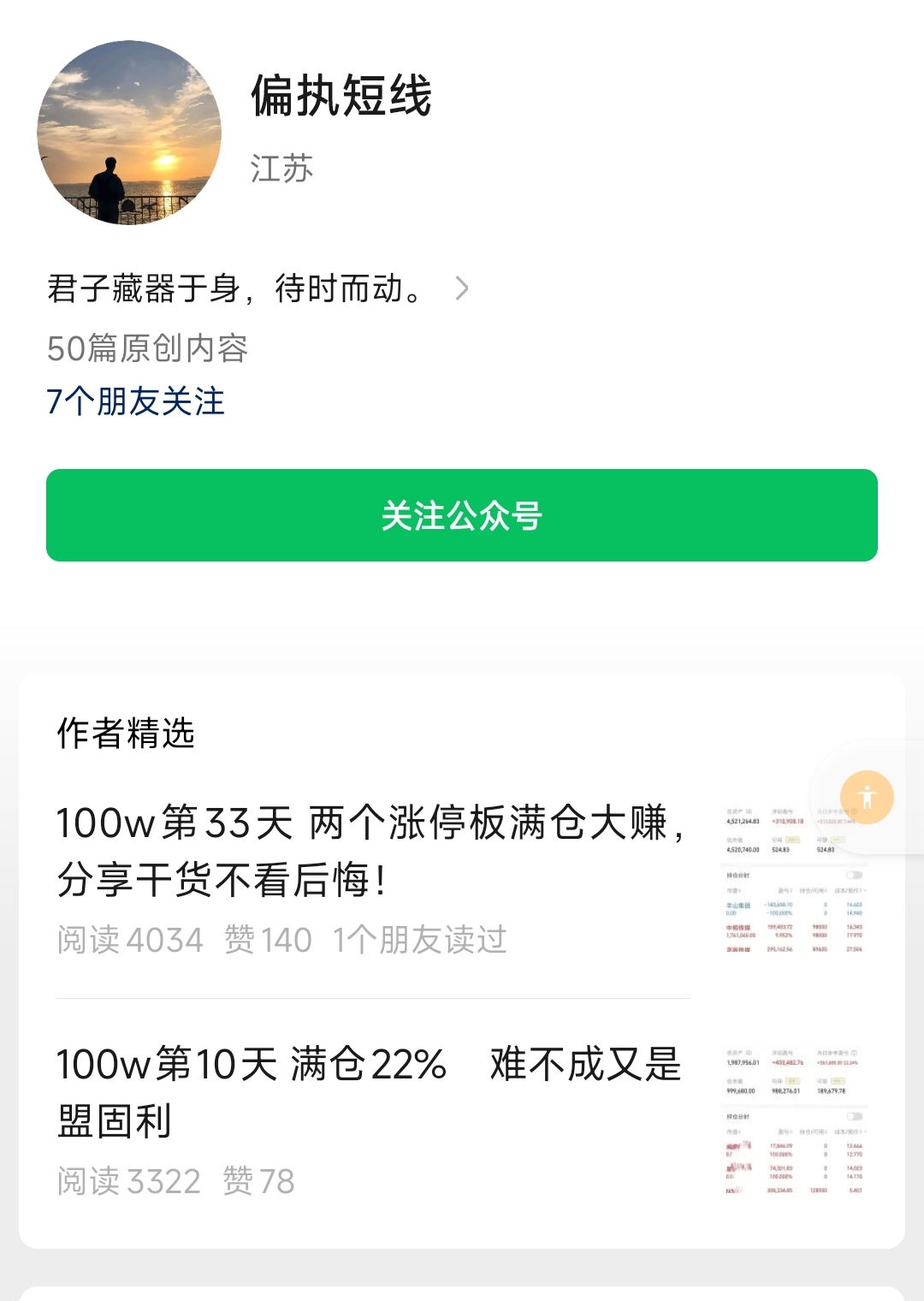 【实时同步】偏执短线 公众号同名大V。主做短线龙头票,一月二月逆势大肉 内部圈子实时消息24小时同步转发 直播圈子专享