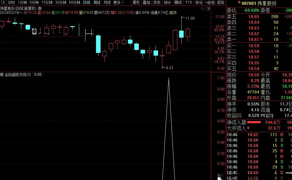 通达信【金钻超短无忧】实战性强,可上车今买明卖超短神器,实战指标