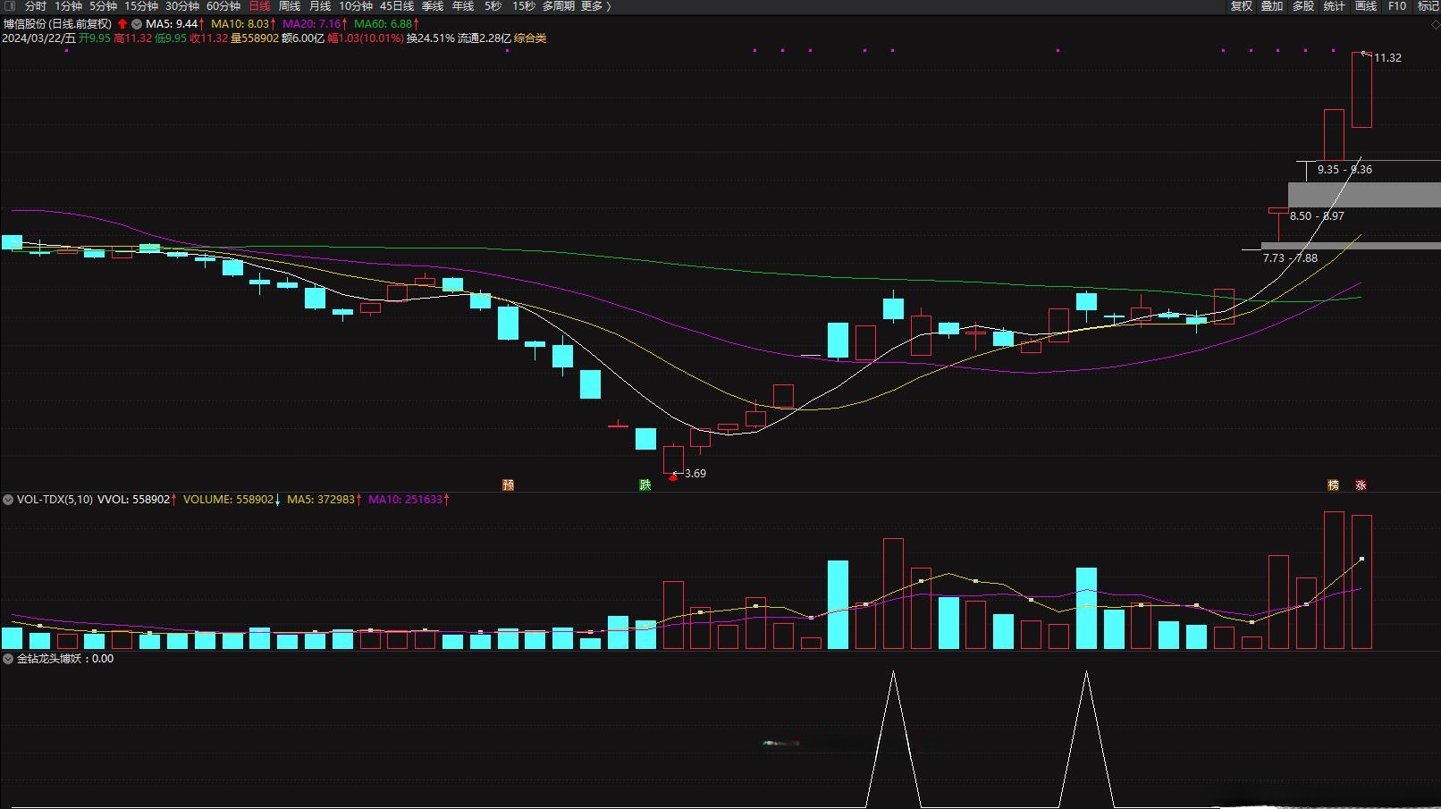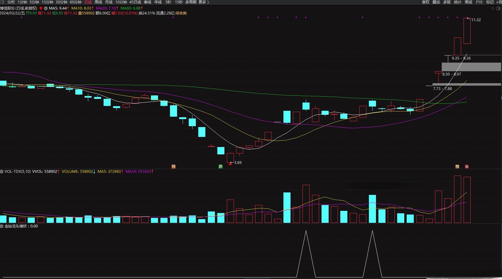通达信【金钻龙头博妖】无需排序,竞价指标,特惠硬核抓涨停阻击龙头妖股,超短线神器