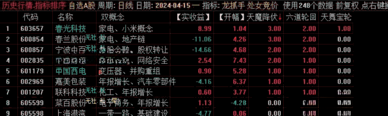 本系统是是竞价排序指标,早盘9.25分使用,对全部A股排序,信号全天不变!