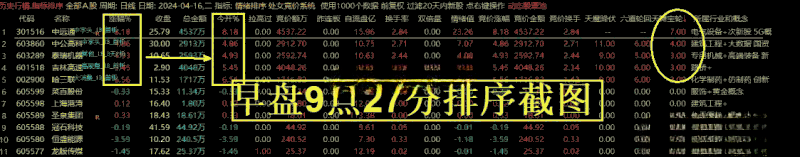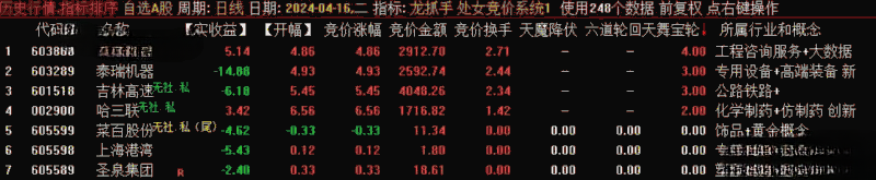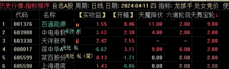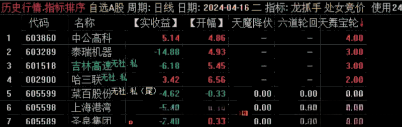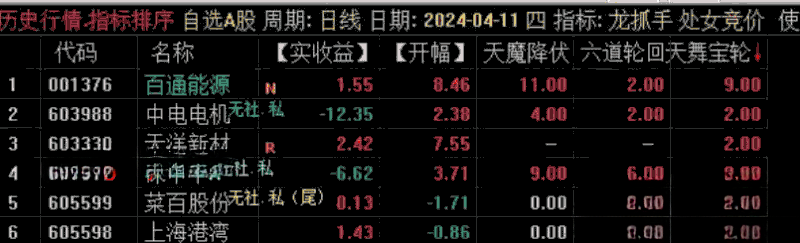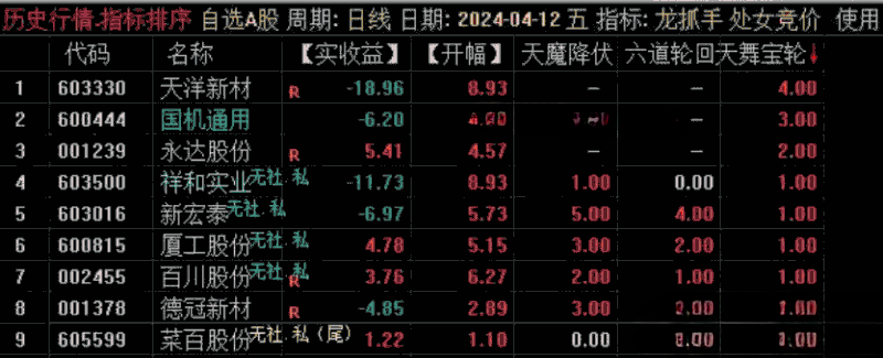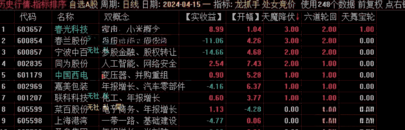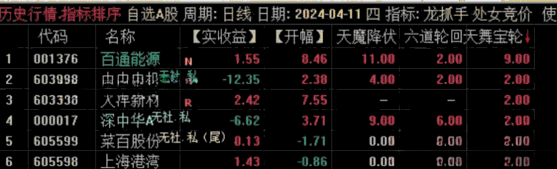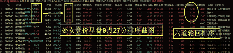 4、注意,如果早盘竞价排序,六道轮回 的值没有大于3 的,说明当日竞价行情较弱,当天原则上不参与,规避A杀的风险!