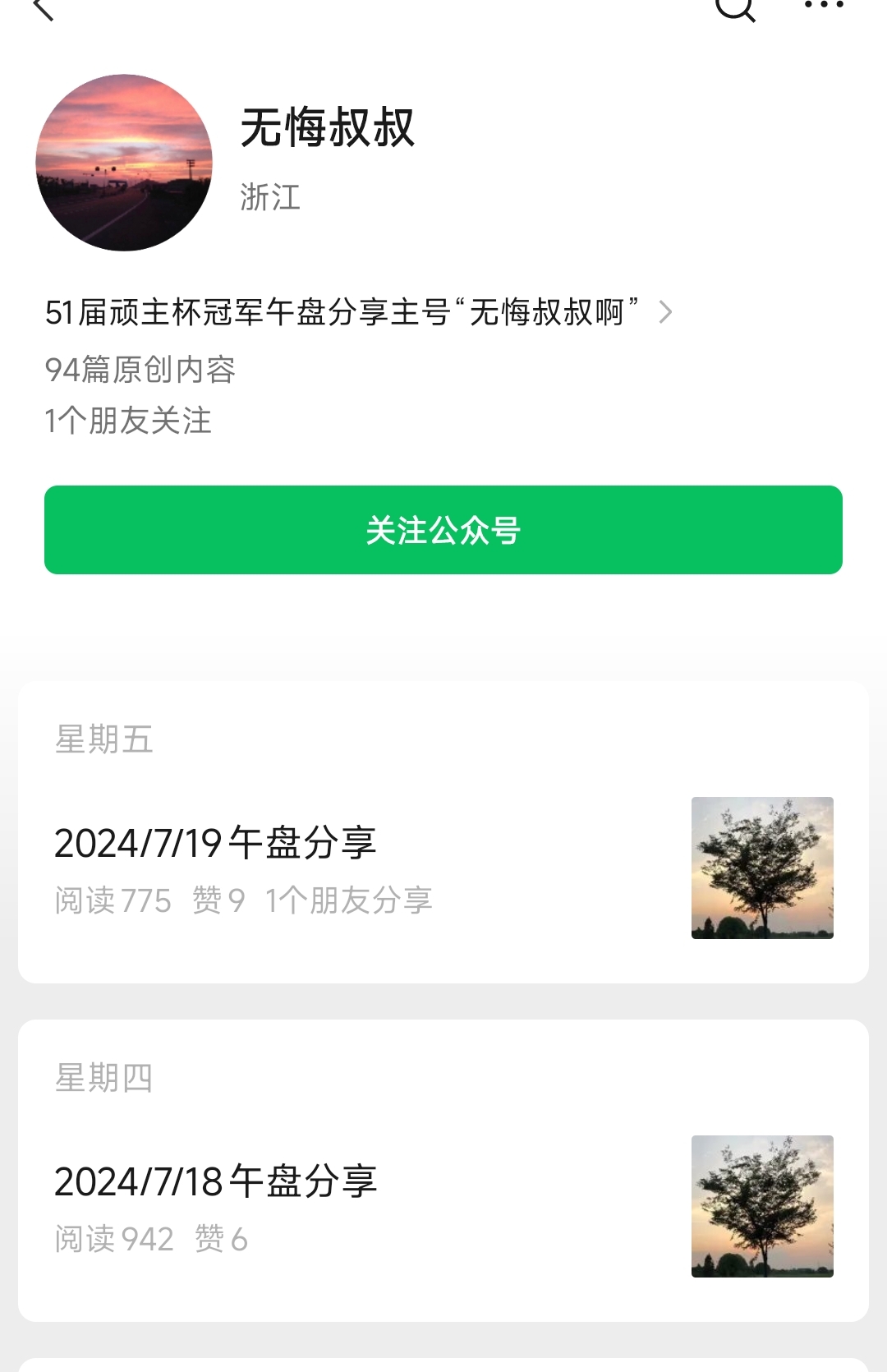 51届顽主杯冠军午盘分享主号“无悔叔叔啊