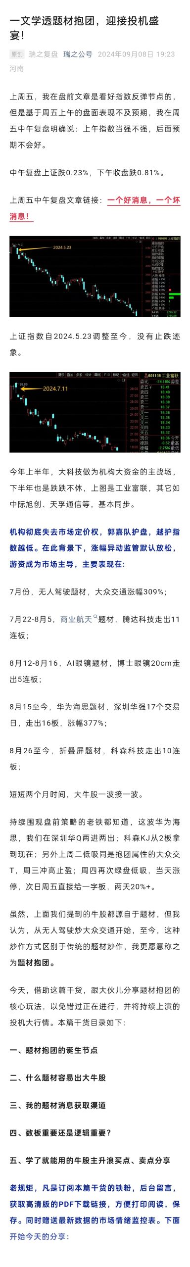 一文学透题材抱团,迎接投机盛宴!---瑞鹤仙:瑞之公号2024.9.8