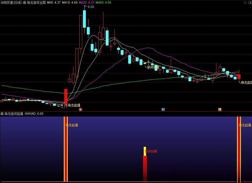 当指标出现“游资抢筹”提示时,则是游资准备介入的信号,可予以关注。