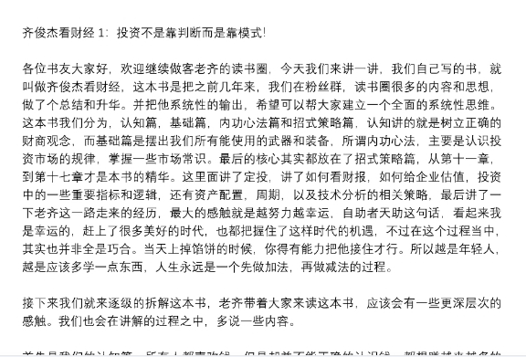 齐俊杰看财经1:投资不是靠判断而是靠模式