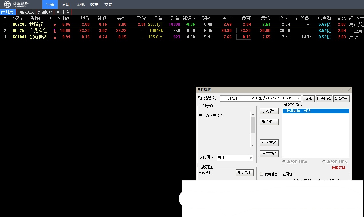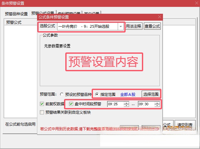 开盘前补好日线数据,9:25~9:30选股也可以设置竞价预警