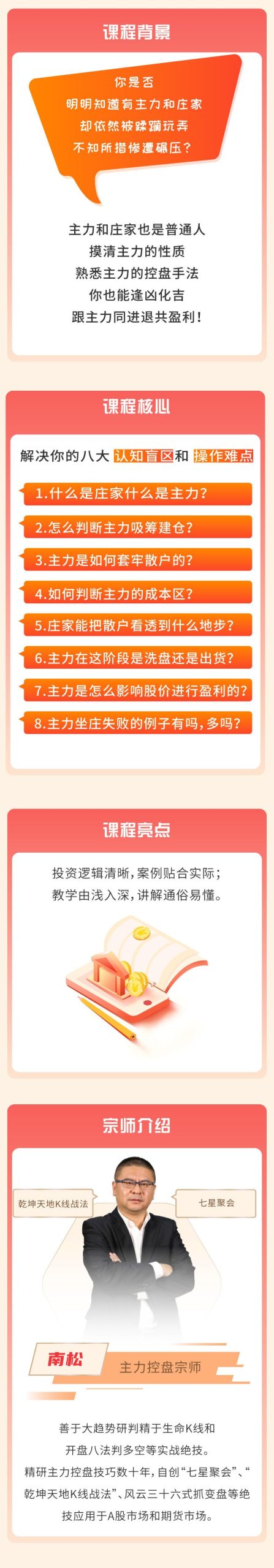 主力控盘宗师带你玩转主力套路吸筹、洗盘、出货,看懂不慌,投资逻辑清晰,案例贴合实际; 教学由浅入深,讲解通俗易懂。