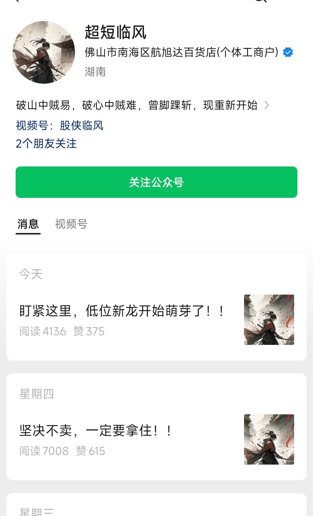 公众号大V超短临风:龙头选手,只做核心!华强、无线、常山、天风、中粮等等,都是他的经典之作! 需要的进!