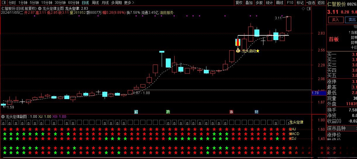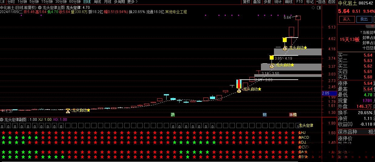 通达信【龙头定律】主副图/选股 共振确定龙头启动的最佳买点 指标源码