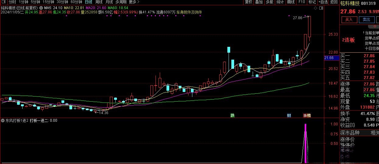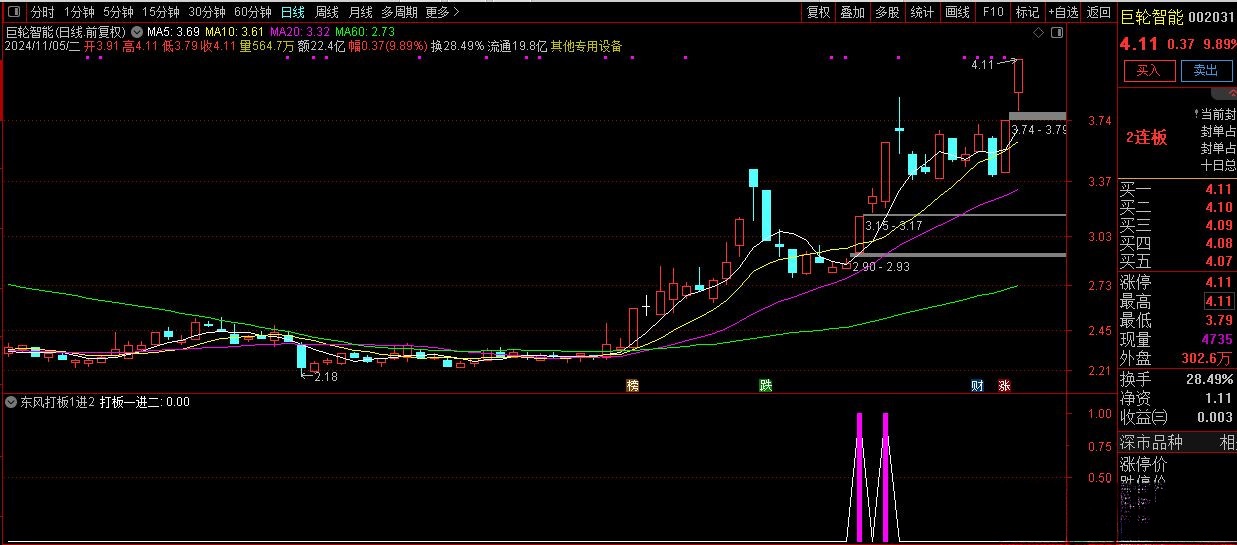 4、本指标是打板指标,绝大多少是涨停出信号,可以排板或者次日择机买入。