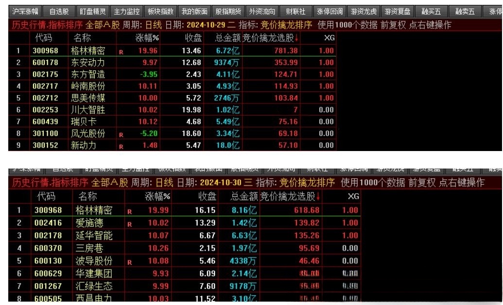 在集合竞价9点25分出排序评分(100分以上为当日较大概率涨停标地)