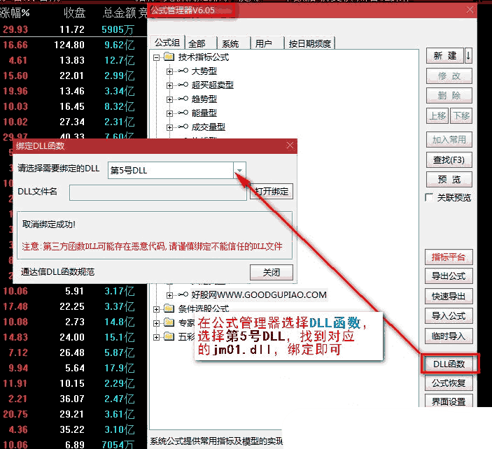 注意:此指标需要绑定DLL,详细绑定步骤如下: