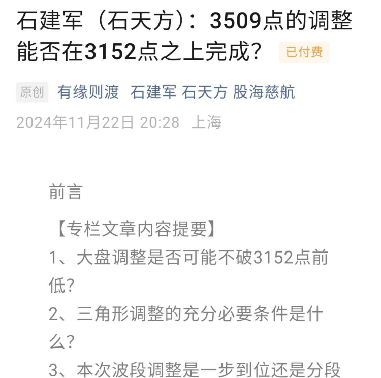 股海慈航付费文241122-石建军:3509点的调整能否在3152点之上完成?