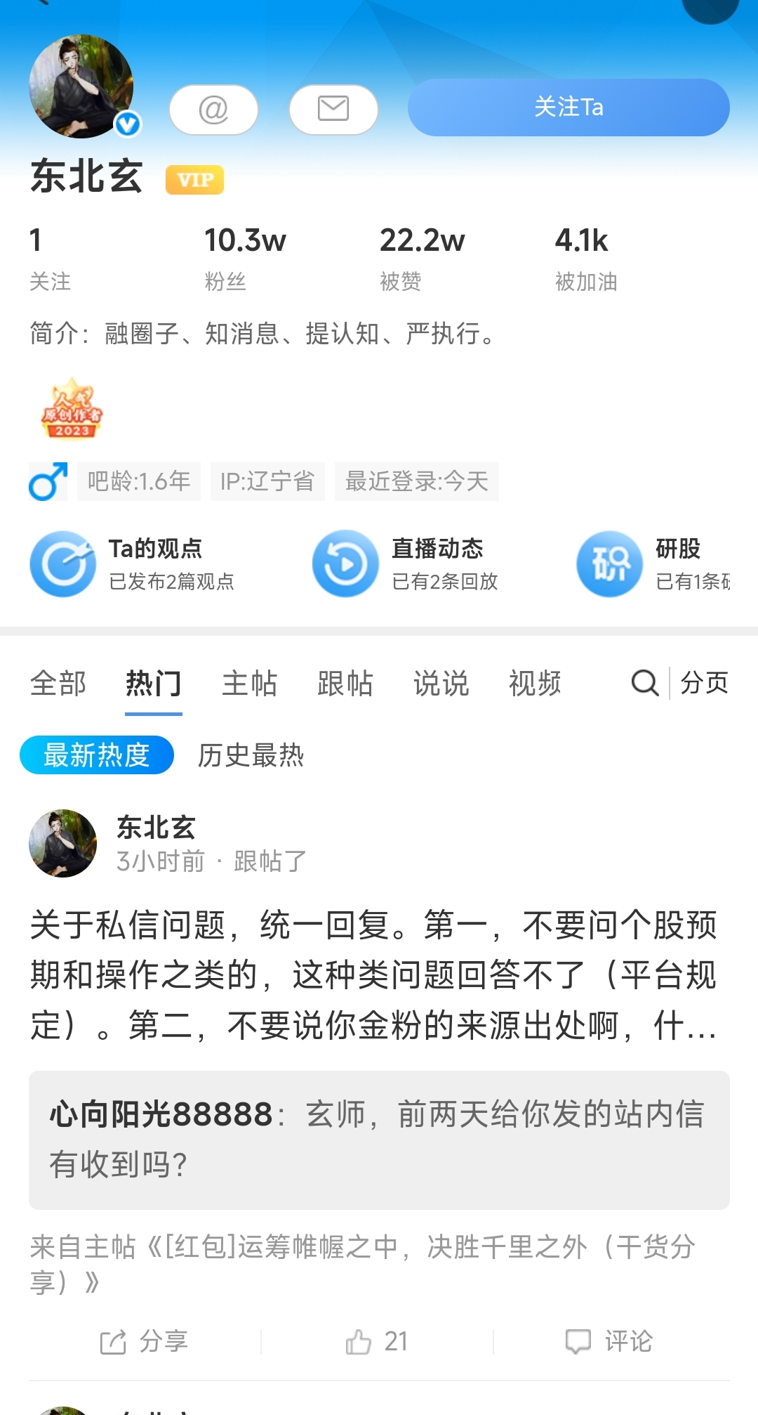 【实时同步】东北玄 实时消息24小时同步转发 直播圈子专享
