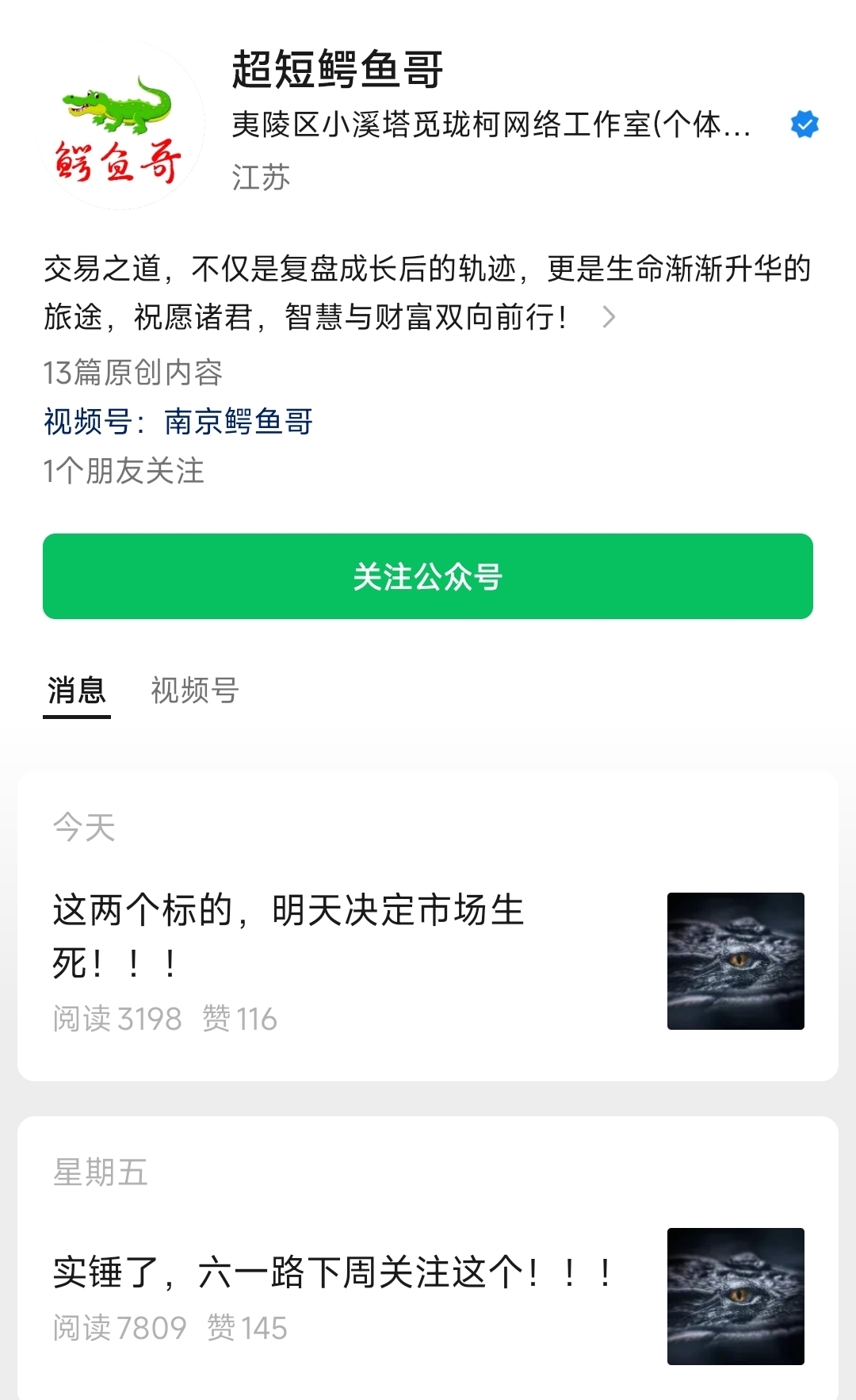 【实时同步】超短鳄鱼哥 实时消息24小时同步转发 直播圈子专享