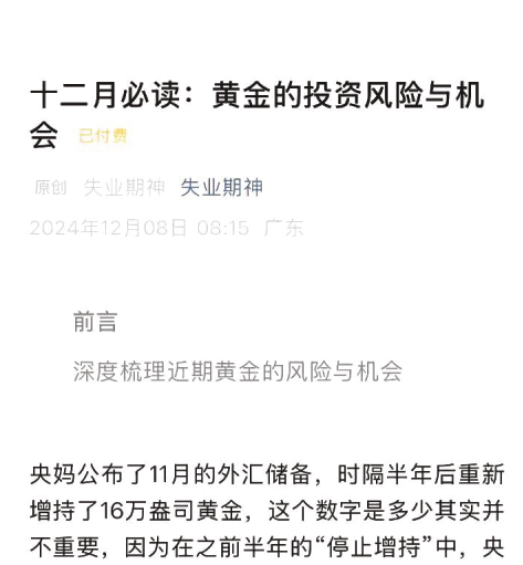 失业期神12.8付费文-十二月必读:黄金的投资风险与机会