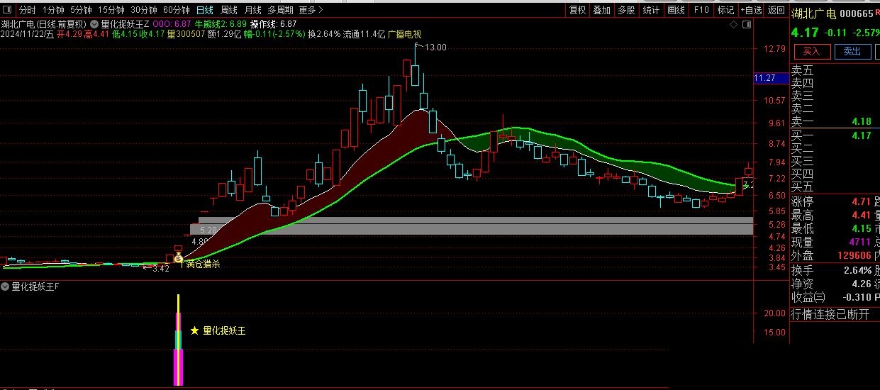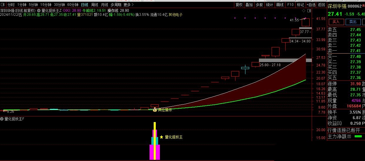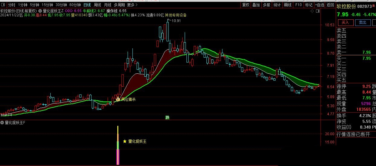 系统内含1主图、1副图及1选股功能,选股指标支持预警,信号稳定,源码公开透明。指标亮点在于高效选股,无论是竞价时段预警(9:25-9:30)还是盘后筛选,一旦信号出现,介入成功率极高,让投资决策更加果断。对于早盘忙碌的投资者,预警信号即买即得,极大节省选股时间。对于日常无暇盯盘的投资者,手机系统同样适用,可随时通过软件选股,次日介入亦能捕捉良好收益。优化版【捉妖王】,2023至2024-11-22精选出票11支,鉴于信号稀缺,该指标发现信号即刻行动,灵活捕捉市场良机。