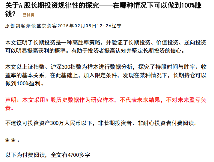 盛京剑客付费文章:关于A股长期投资规律性的探究,在哪种情况下可以赚钱