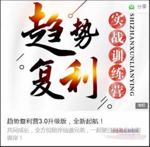 趋势复利营3.0升级版,全新起航!共同成长,全方位陪伴仙道兄弟,一起驶过财务自由的彼岸!