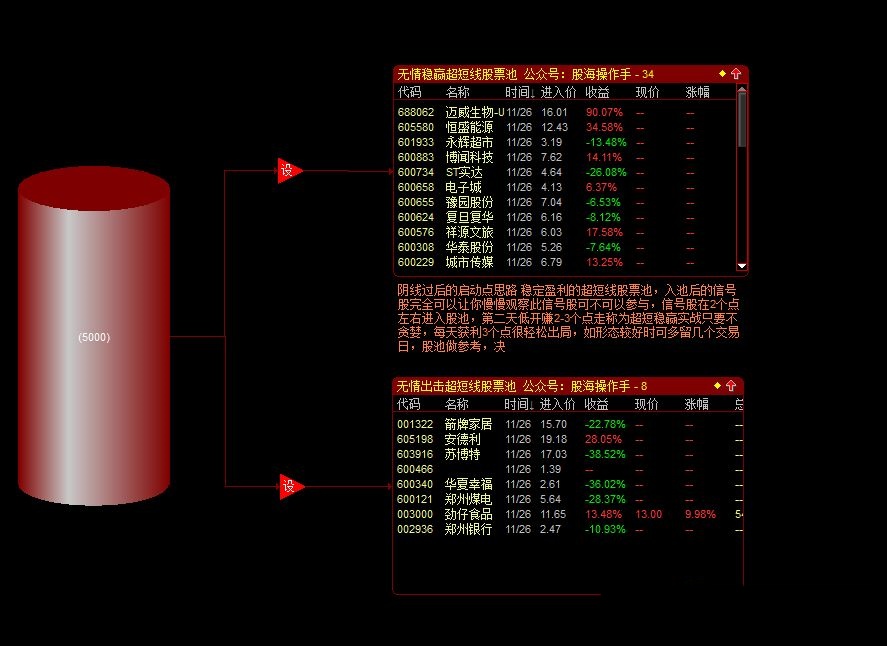 盘中实时低位自动预警主力运作的强庄股功能过滤入池的信号股完全可以让你慢慢观察此信号股可不可以参与,不用去追高担心买不到票,一款精品实战型超短线,短线套利系统。
