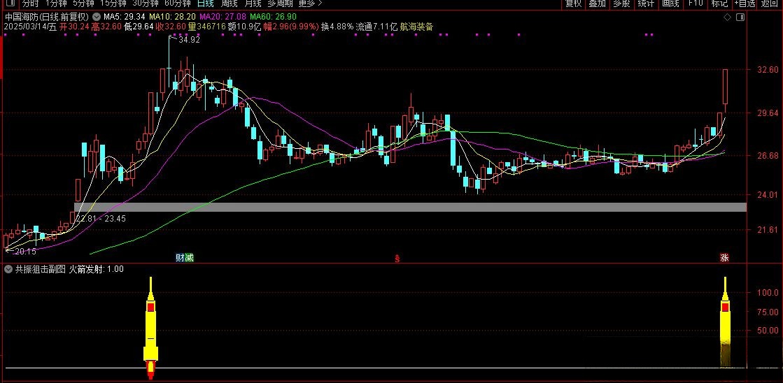 当火箭发射信号出现时,系统会在指定位置(纵坐标为98)用红色字体显示“火箭发射”字样,进一步突出信号的可视性,帮助技术分析人员快速识别该信号。该信号通过设定股价涨停范围、换手率范围和涨幅范围,形成多条件共振的“火箭发射”信号。副图中通过绘制不同颜色和形状的柱状图,并显示文字提示,清晰展现满足信号的条件。这一设计旨在帮助技术分析人员快速捕捉股价可能出现的短期强势上涨行情,为短期买卖决策提供参考信号,辅助判断股价的快速启动或加速上涨机会。