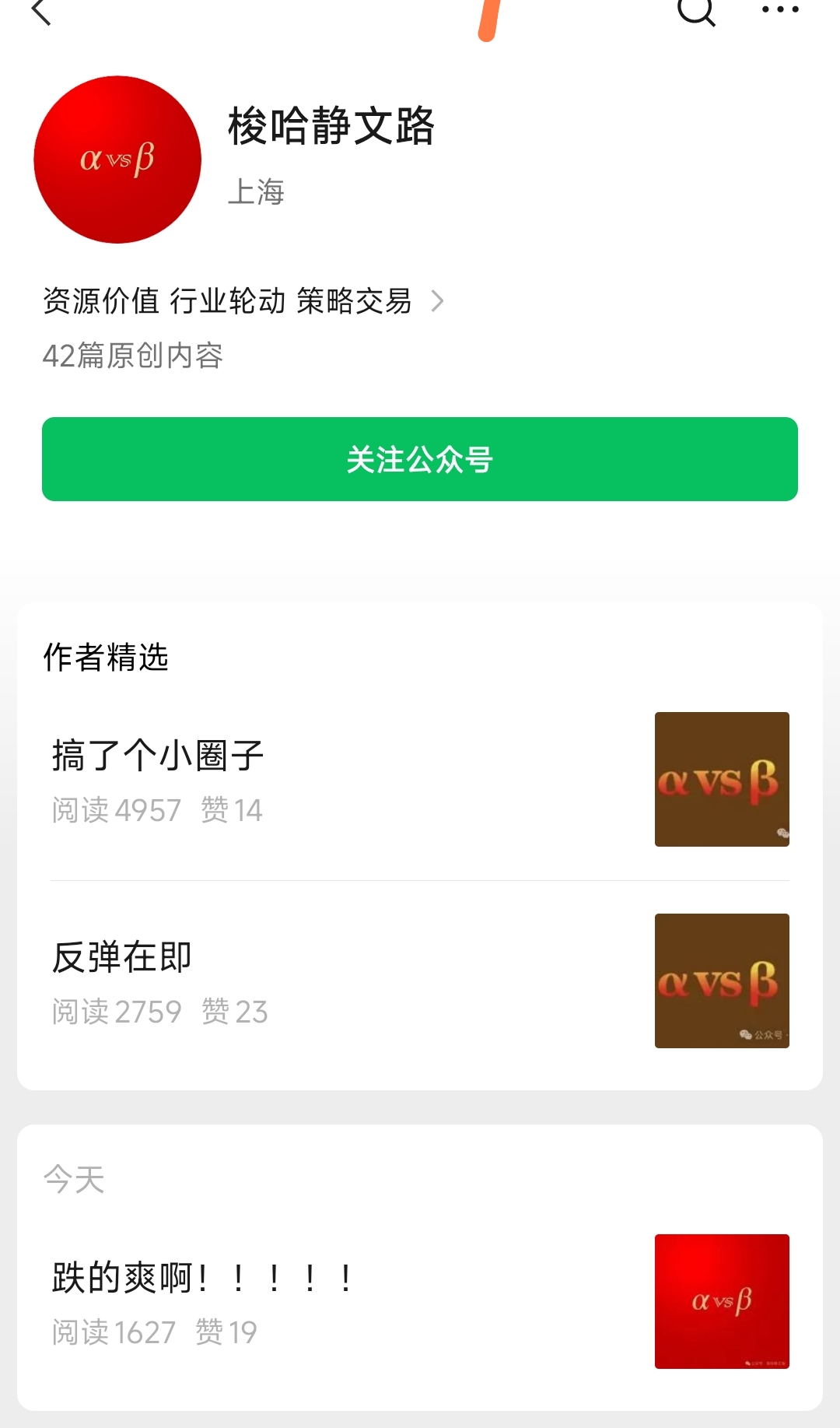 操作风格:公众号超实力大V,行业趋势前瞻,原基金公司工作,去年4.11按计算器精准捕捉正丹,提前预测硬逻辑,行业增量信息,喜欢看硬逻辑的可以关注
