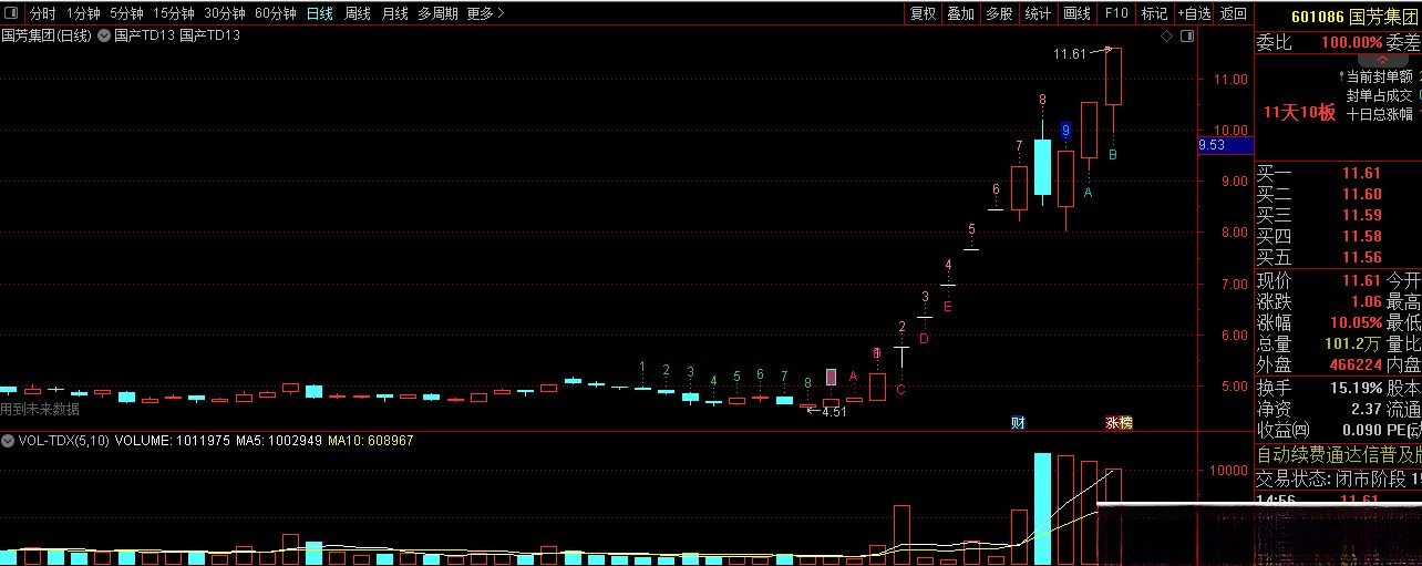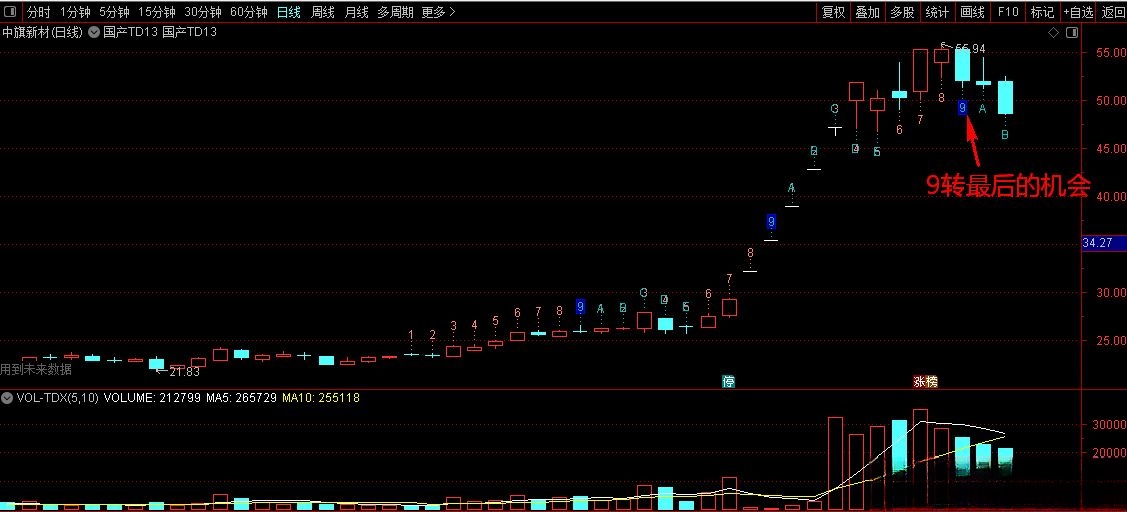在9转后,注意C D E。 D是标准的国人数出来的13,当然理解错的人太多。C呢出货收益也可以。E有时在最高点,有时就过了一天了。所以D=13,可以获利了结。C有时数错了它真的转头,多数还是D和E。要关注这只票之前的行为,他喜欢7转?9转?D转?E转? 那么可以推断出,当它成为妖股,它哪天是卖点。【妖股连板票重点看C D E】我不能告诉你最高是哪里,但最起码你不用担心你跑错了。