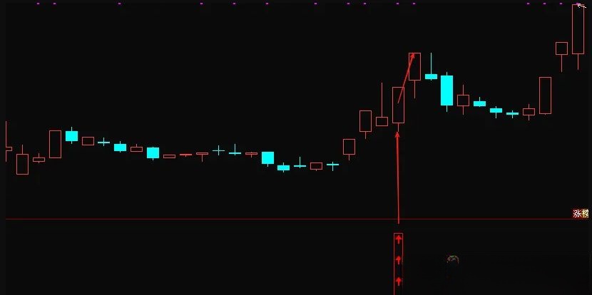 进场信号:下图,副图显示的竖向排列的红色箭头就是介入信号;