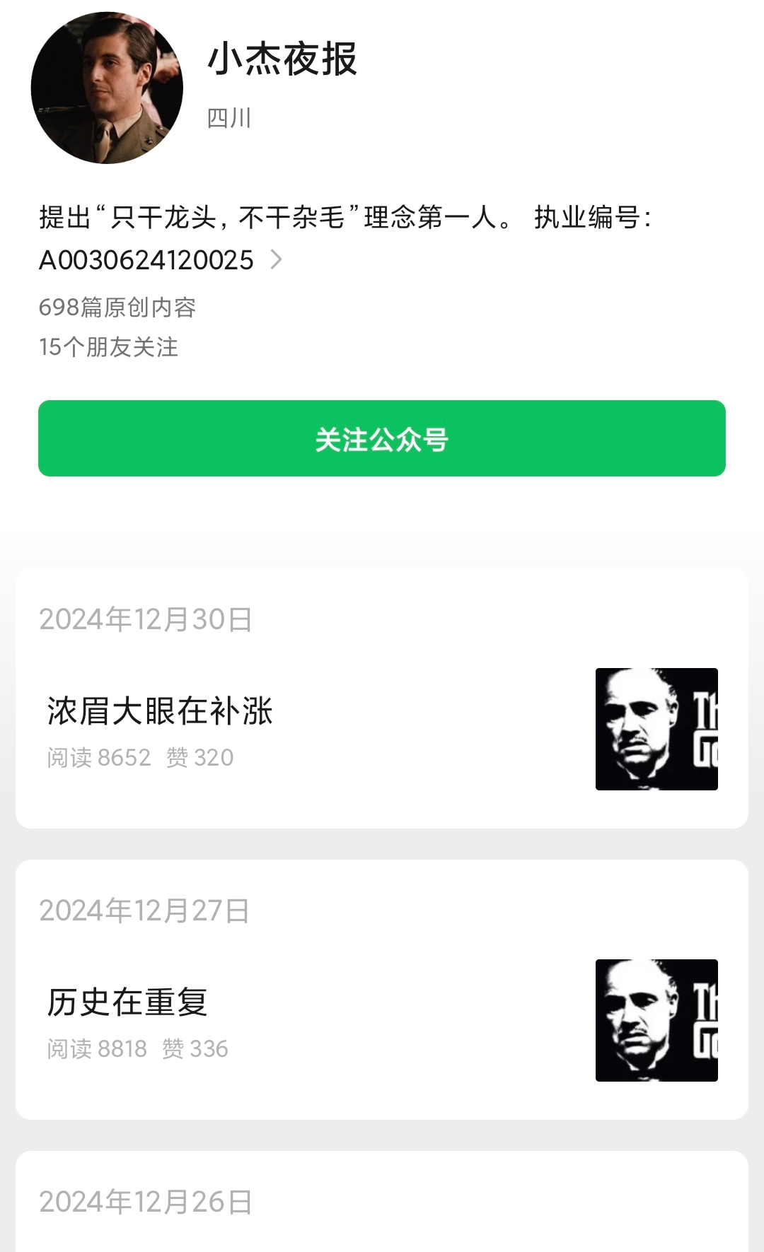 公众号大v-提出“只干龙头,不干杂毛”理念第一人。