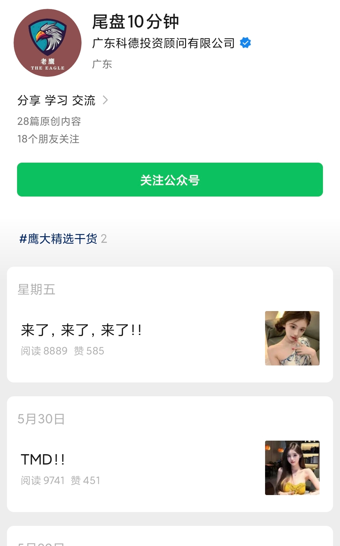 【实时同步】尾盘十分钟 公众号大v 实时消息24小时同步转发