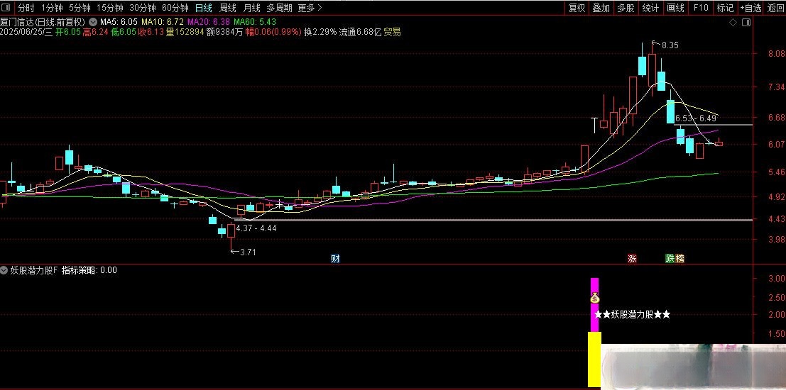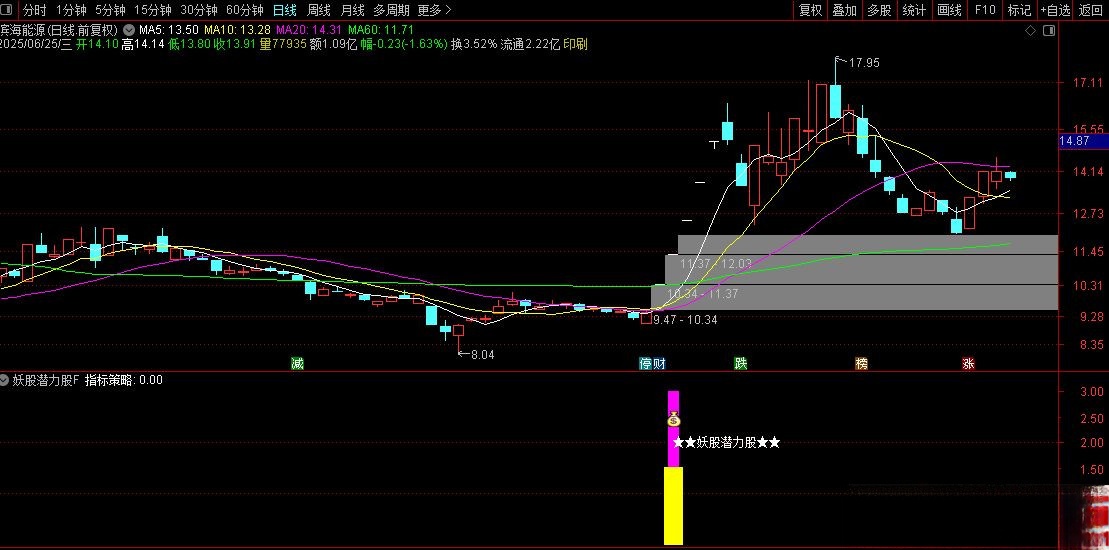当出现紫色/黄色柱状图+”★★”提示时建仓,配合以下条件更可靠:成交量是前日2倍以上,分时图呈现”烂板”形态(多次开板),跌破或不创新高则出局。