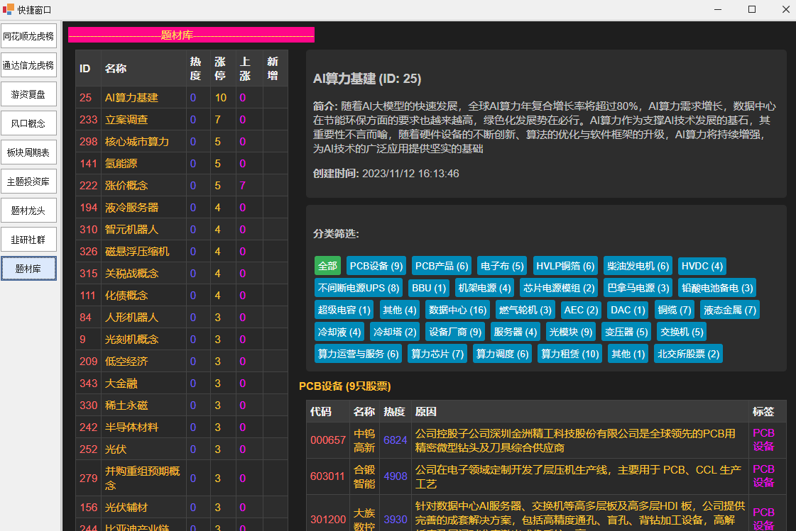 股票重叠概念汇总整理选股工具,游资复盘风口概念,相同概念或类似概念的个股叠加选出来