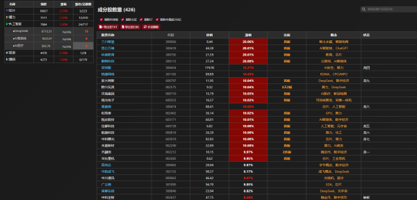 (3)板块成分股数量为三个子版块之和,点击板块即可展示全部子版块个股并自动去重,单个子版块亦能完整呈现。