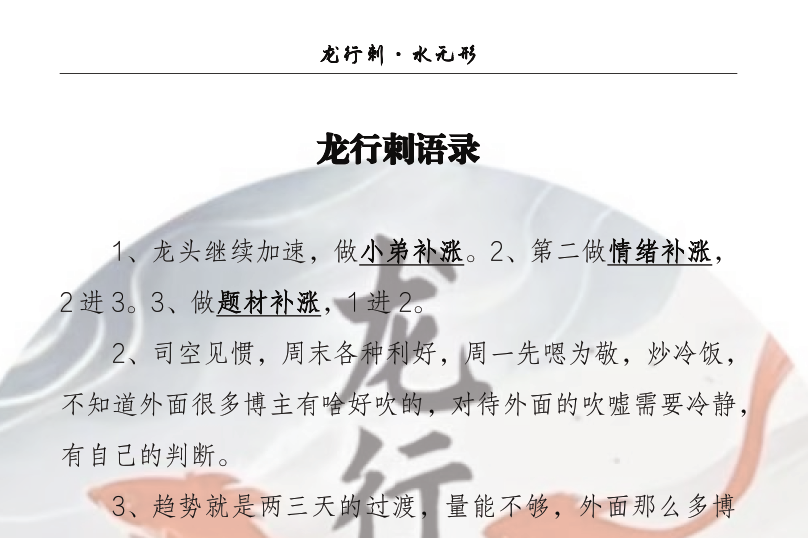 龙行刺水无形情绪周期 龙行刺语录汇总258页干货文档