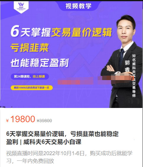 威科夫6天交易小白课:6天掌握交易量价逻辑,亏损韭菜也能稳定盈利