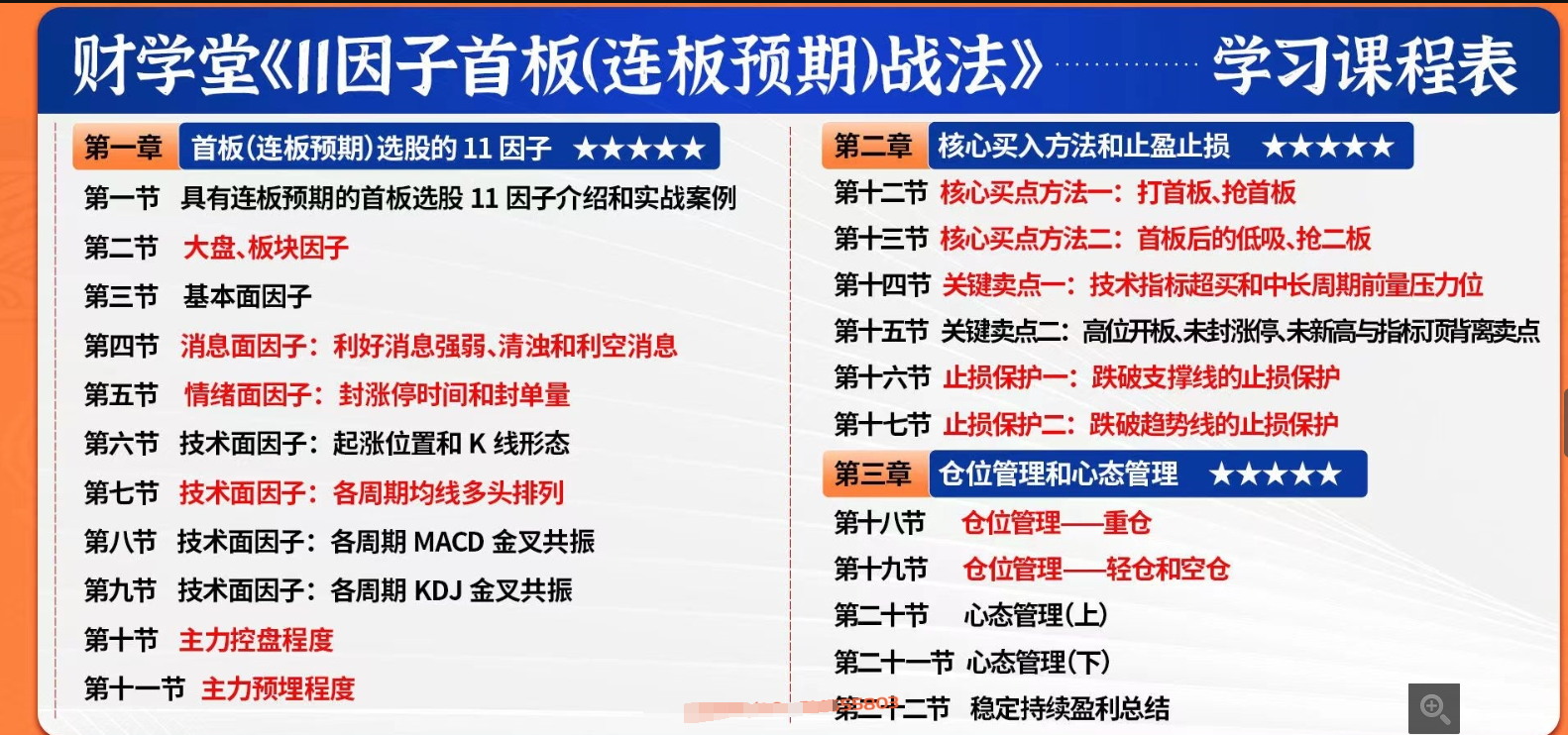 ①产生连板的个股,内在因素有很多,通过11个因子的学习,能大概率掌握确定性高的连板个股;