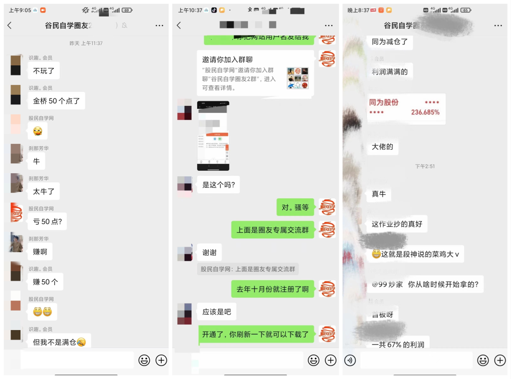 所以这个时候我就有了建立一个把想学习炒股的人链接到一起的社群圈子。我把这个圈子取名“股民自学圈子”大家可以在这个圈子里学习交流炒股经验,想学习某个大咖课程的时候可以一起合买。